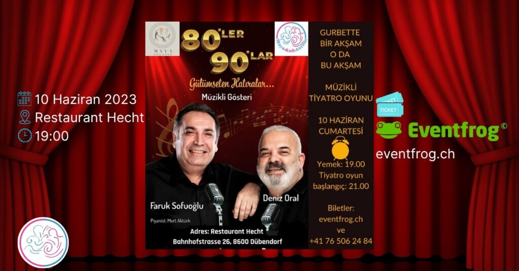 80’ler ’90lar Gülümseten hatıralar… Ekranlardan tanıdığımız Faruk Sofuoğlu ve Deniz Oral’ın birlikte sahne aldığı; sürpriz performansları, anlatıları, müzikleri ile geçmişten günümüze değin dokularımıza işleyen ortak anılamızla bezenmiş neşesi bol, kahkahası çok, keyifi uzun bir eğlence programı. Piyanist şantör Mert Aktürk’ün canlı müzikleri eşliğinde hep bir ağızla söylenilen şarkılarla hoş hatıraları uyandırıyoruz. “80’ler ’90lar” en çok da kendini özleyenler için…
